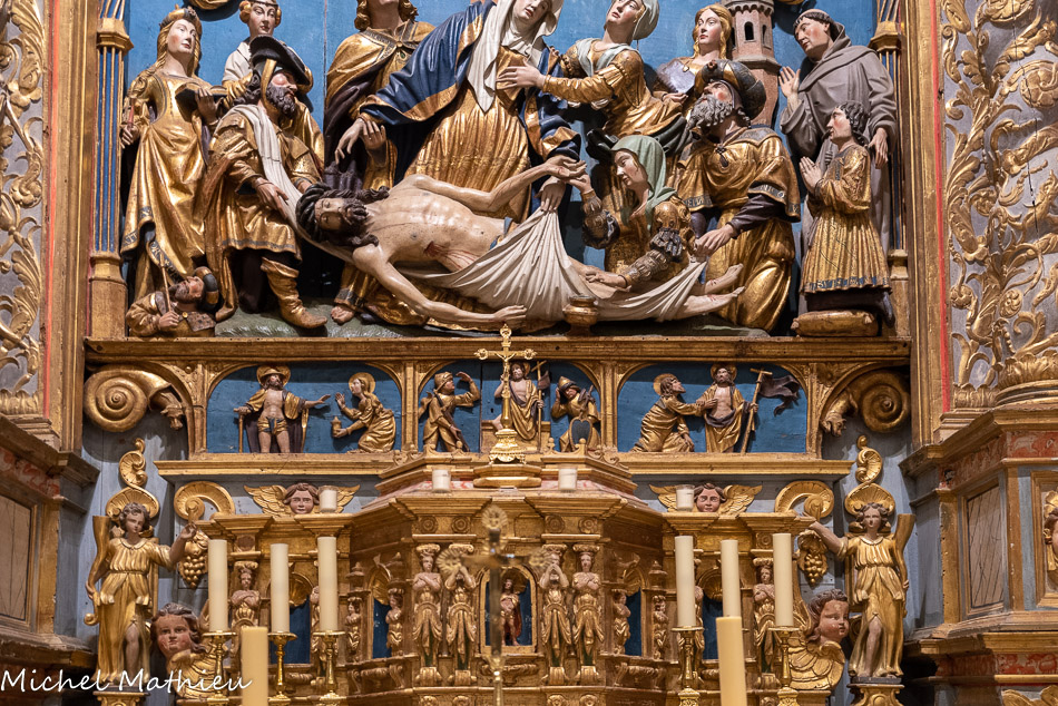 Retable de la Nativité. En son centre, le panneau peint de la Nativité est une œuvre de la Renaissance, aux réminiscences gothiques (brocarts, galons d'or, auréoles). Il est l’œuvre d’un artiste influencé par les Ecoles du Nord, attentifs aux formes nouvelles (l’architecture, les ornements) et aux détails (les portraits des donateurs, le chapeau de paille au centre du panneau), qu’il décrit avec une grande précision.