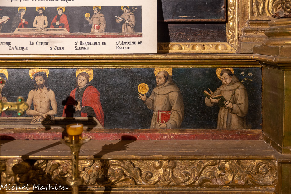 De gauche à droite : le Christ, St Jean, St Bernardin de Sienne, St Antoine de Padoue.