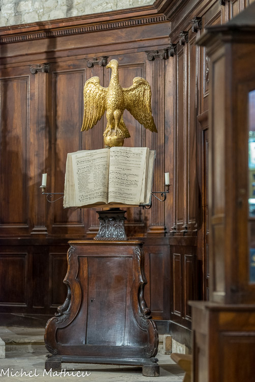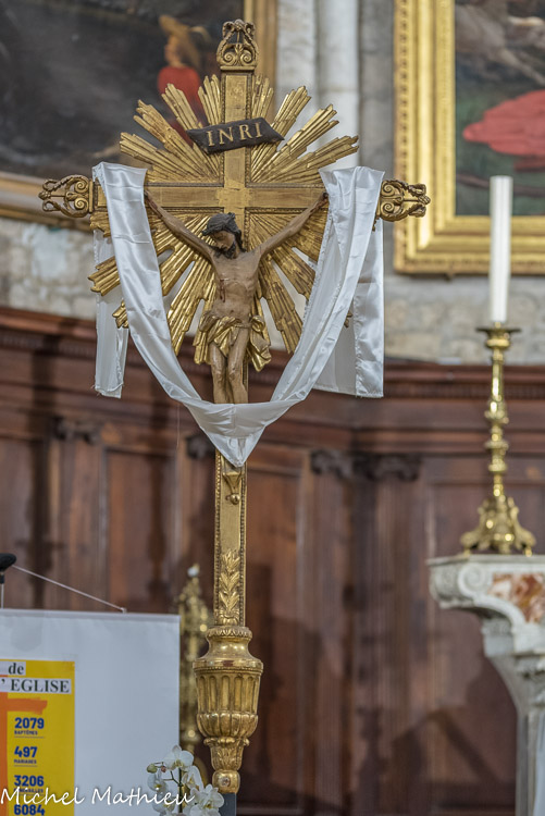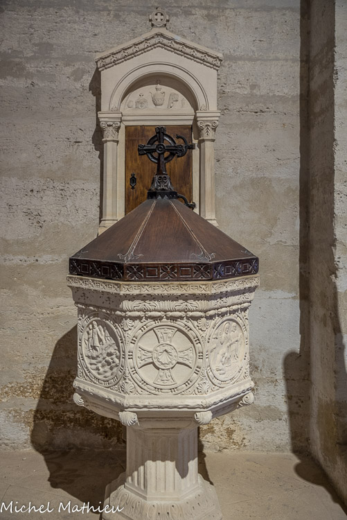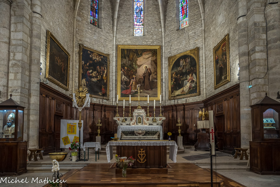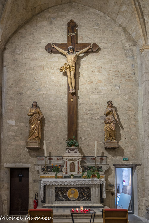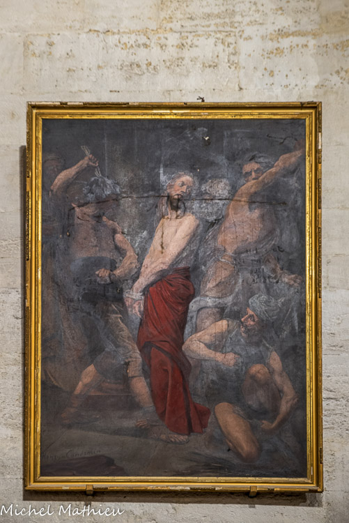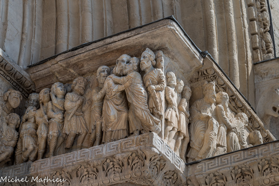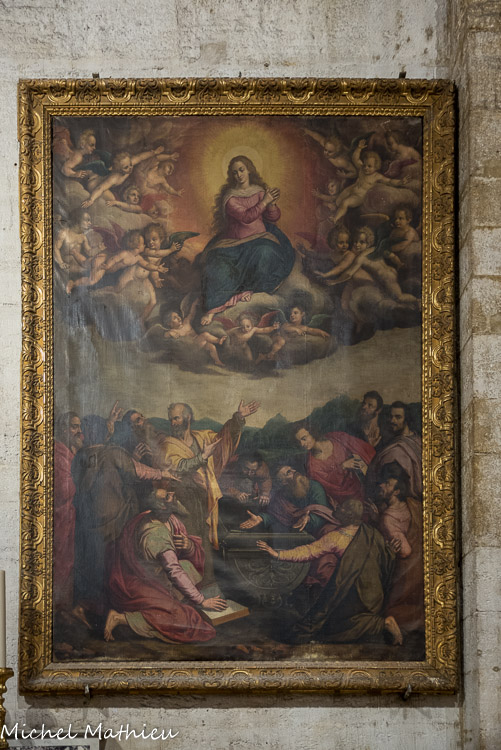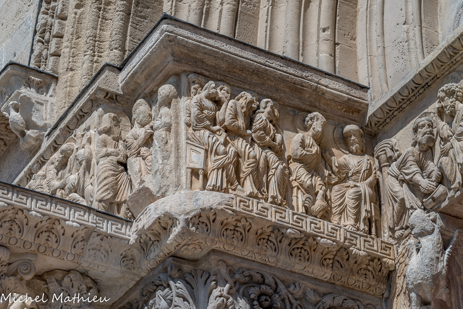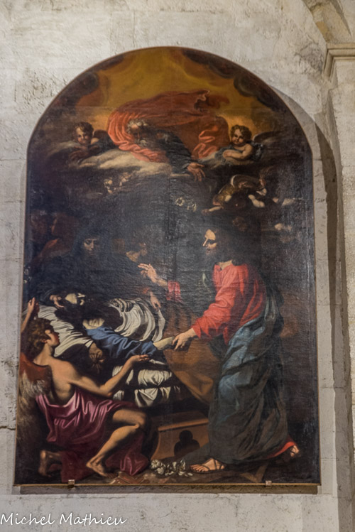 La frise : La résurrection de Lazare. L'annonce du reniement de Pierre. Le lavement des pieds. La Cène (refaite en partie au XVIIIeme siècle). Le baiser de Judas et l'arrestation de Jésus. La comparution devant Pilate.
