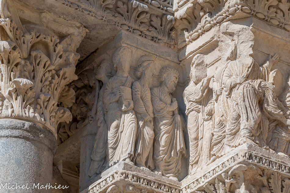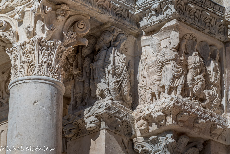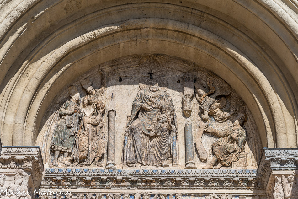 Tympan nord : à gauche, Adoration des mages, exécutée par un artiste remarquable par ses drapés doux et fluides. Il réalisa aussi une bonne partie de la frise. Au centre, Vierge en Majesté, à droite, songe de Joseph : cycle de l'Incarnation de Dieu.